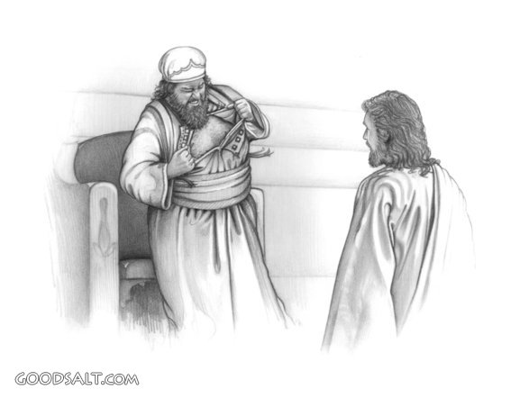Caiaphas Tears His Robes Mark 14:63-64 christ, Jesus, breaking, law, teacher, trial, ruler, tear, of, sin, pilate, easter, disgust, tearing, passion, the, clothes, Caiaphas PROJECTION - License for PowerPoint™ PRINT – buy a print of this picture; optional frame Bible Hub |