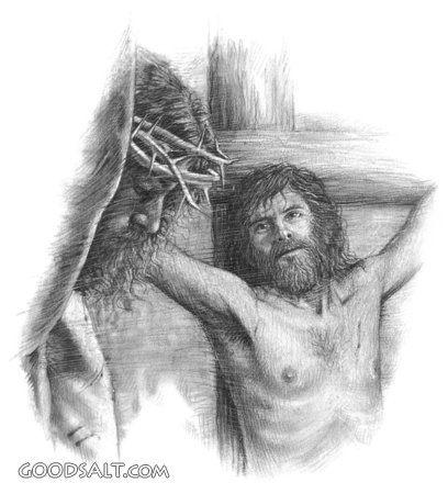 Christ and the Theif Luke 23:42 agony, crucified, christ, Jesus, talking, nailed, man, men, crown, believing, cross, thief, sacrifice, kindness, easter, crucifixion, sins PROJECTION - License for PowerPoint™ PRINT – buy a print of this picture; optional frame Bible Hub |