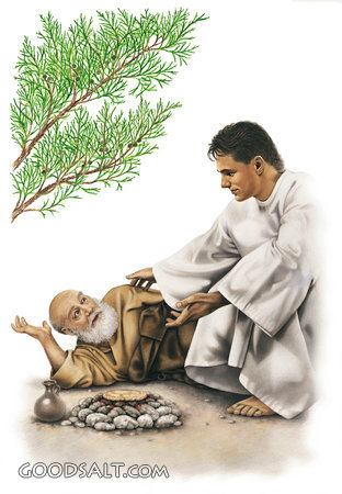Elijah Visited by An Angel 1 Kings 19:5 angel, provide, cake, help, water, helping, providing, man, men, old, elijah, food, tree, flee, male, jezebel, horeb, juniper, coals, baking PROJECTION - License for PowerPoint™ PRINT – buy a print of this picture; optional frame Bible Hub |