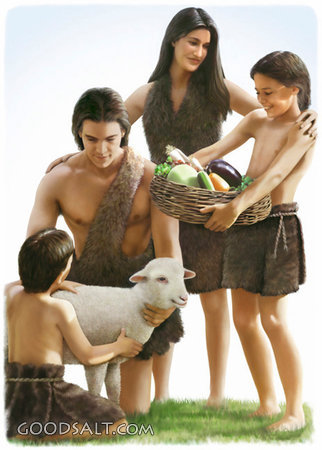 Adam, Eve, Cain and Abel Genesis 4-3 father, vegetable, brother, lamb, sheep, adam, eve, dad, mom, proud, abel, cain, son, family, mother, parent, sacrifice, offering, children PROJECTION - License for PowerPoint™ PRINT – buy a print of this picture; optional frame Bible Hub |