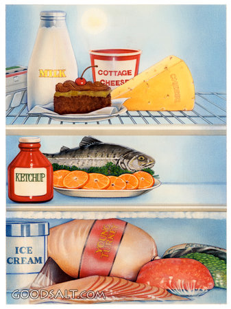 cake, orange, dairy, ketchup, cheese, milk, refrigerator, fridge, egg, food, meat, cottage, fish, group