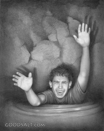 Boy Falls Down Well Psalm 40:2 reaching, help, water, raised, scream, sinking, yell, stone, teen, teenager, boy, afraid, male, well, frightened, arm, arms PROJECTION - License for PowerPoint™ PRINT – buy a print of this picture; optional frame Bible Hub |