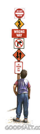 way, not, enter, wrong, boy, man, sign, road, young, male
