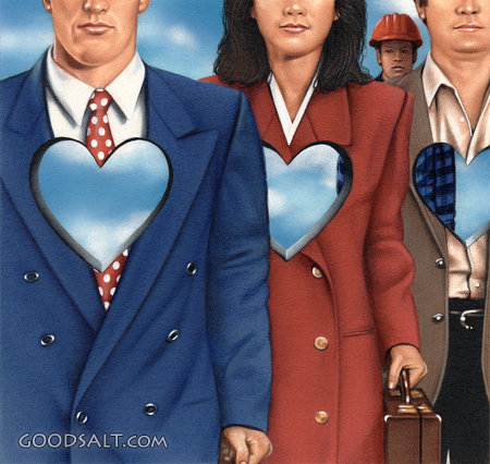 heart, construction, businessmen, businesswoman, worker, lack, woman, men, suit, heartless