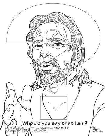 Who Do You Say I Am? Matthew 16:13-17 messiah, christ, Jesus, question, peter, simon, revealed, Philippi, son of god, son of man, coloring page, coloring pages, dave oconnell, gscoloringpage PROJECTION - License for PowerPoint™ PRINT – buy a print of this picture; optional frame Bible Hub |