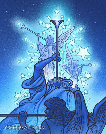 Joy to the World Matthew 24:31 1 Corinthians 15:51-52 Luke 2:8-10 Isaiah 6:3 Revelation 5:11 Psalm 148:2 Luke 2:13 celebration, angels, trumpets, angels singing, angelic, birth of jesus, rejoicing angel, four winds PROJECTION - License for PowerPoint™ PRINT – buy a print of this picture; optional frame Bible Hub |