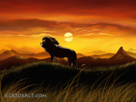 Lion on a Hill Revelation 5:5 Amos 3:4 symbolism, sun, nature, orange, yellow, predator, outdoor, wildlife, grass, animal, sunrise, sunset, lion, beast, of, judah, silhouette, symbolic, mountains, clouds PROJECTION - License for PowerPoint™ PRINT – buy a print of this picture; optional frame Bible Hub |