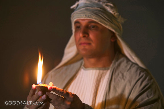 Isrealite Man Holding Lit Lamp in the Dark Matthew 5:14-15 lamp, candle, father, costume, sabbath, worshipping, lighting, man, worship, light, oil, headdress PROJECTION - License for PowerPoint™ PRINT – buy a print of this picture; optional frame Bible Hub |