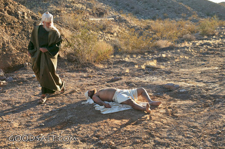 Injured Man on Ground As Another Passes by Looking Luke 10:32 read, lying, injured, samaritan, injury, levite, victim, wounded, man, priest, path, hurt, good PROJECTION - License for PowerPoint™ PRINT – buy a print of this picture; optional frame Bible Hub |