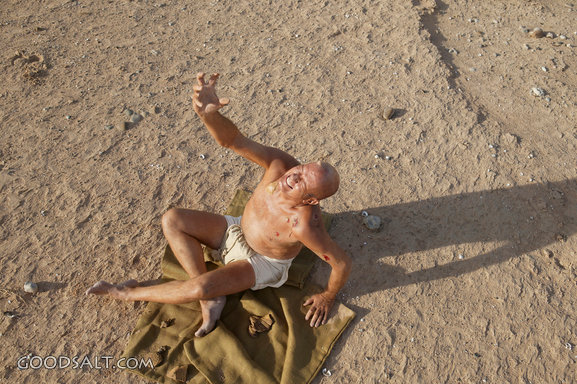 Job in Anguish Job 3:1-3 reaching, desert, pain, naked, overhead, job, sore, grimace, cross legged, reach, pray, prayer, man, hand, praying, plead, pleading, arm, boils, sores PROJECTION - License for PowerPoint™ PRINT – buy a print of this picture; optional frame Bible Hub |