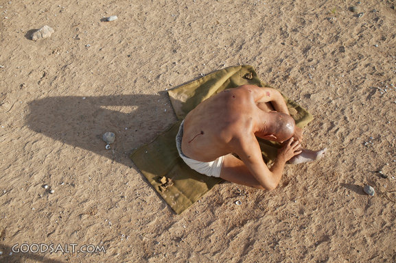 desert, pain, mat, naked, overhead, job, sore, frustrating, man, sitting, sit, frustration