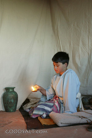 lamp, candle, tent, israelite, costume, sideway, white, boy, worship, light, sitting, sit, jug