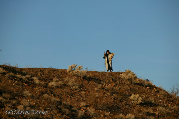 man, man in dessert, man on hill, man with staff