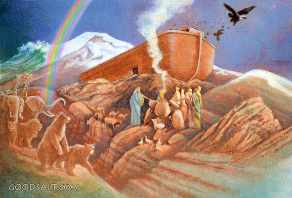 rainbow, promise, boat, ark, flood, sacrifice, noah, animals