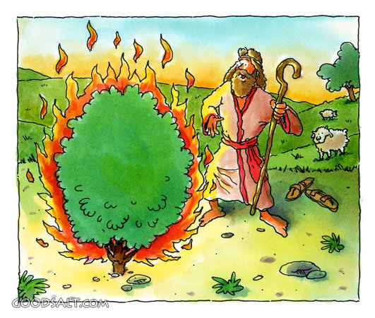 The Burning Bush Exodus 3:2-22 shepherd, sheep, fire, bush, moses, burning, burning bush, hochstatter, daniel j. hochstatter, holy ground, remove shoes PROJECTION - License for PowerPoint™ PRINT – buy a print of this picture; optional frame Bible Hub |
