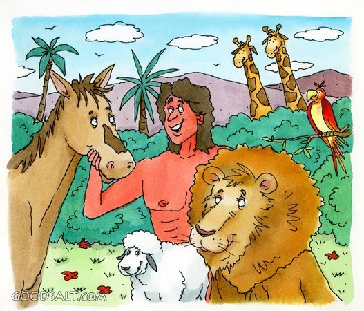 Adam Names the Animals Genesis 2:19 creation, lamb, sheep, lion, adam, horse, garden, name, giraffe, eden, names, animals, hochstatter, daniel j. hochstatter PROJECTION - License for PowerPoint™ PRINT – buy a print of this picture; optional frame Bible Hub |
