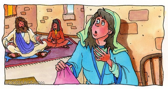Jesus Visits Martha and Mary Luke 10:38-42 help, upset, angry, hochstatter, daniel j. hochstatter, jesus mary and martha, mary and martha, martha upset PROJECTION - License for PowerPoint™ PRINT – buy a print of this picture; optional frame Bible Hub |