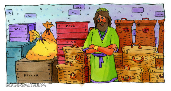 Joseph in Charge of Pharaoh's Warehouses Genesis 41:47-49 grain, warehouse, hochstatter, daniel j. hochstatter, storehouse, joseph stores up rations, joseph gathers crops, joseph stores grain PROJECTION - License for PowerPoint™ PRINT – buy a print of this picture; optional frame Bible Hub |