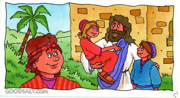 Jesus Blesses the Children Luke 18:15-17 caring, children, love, jesus and children, hochstatter, daniel j. hochstatter, jesus blesses children, time for children, jesus loves children PROJECTION - License for PowerPoint™ PRINT – buy a print of this picture; optional frame Bible Hub |