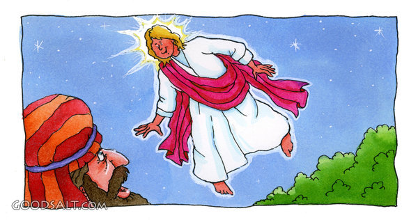 Shepherds and Angels Luke 2:8-15 angel, shepherd, announcement, hochstatter, daniel j. hochstatter, angel and shepherd, angel appears to shepherd, angel in sky, shepherd announces PROJECTION - License for PowerPoint™ PRINT – buy a print of this picture; optional frame Bible Hub |