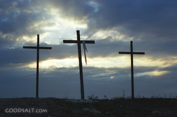 3 Bare Crosses With Clouds at Sunrise Luke 23 foggy, cloudy, sky, christ, Jesus, cloud, cloth, three, light, cross, religion, religious, fog, wooden, easter, crucifixion, crucify, silhouette PROJECTION - License for PowerPoint™ PRINT – buy a print of this picture; optional frame Bible Hub |