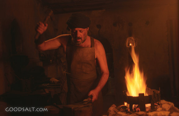 Workshop 1 Samuel 13:19 Isaiah 44:12 Isaiah 41:7 glow, flame, dark, worker, work, metal, labor, hammer, laborer, workman, fire, glowing, red, tool, refiner, tools, refine, workshop, metal smith, iron smith, frank gampel, apron, pound, pounding PROJECTION - License for PowerPoint™ PRINT – buy a print of this picture; optional frame Bible Hub |