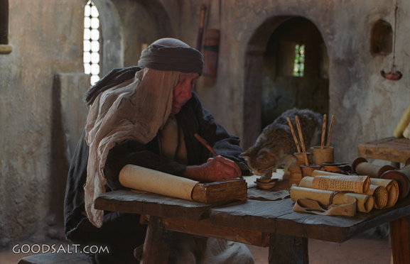 Scribe at Work Galatians 6:11 write, work, working, man, john, scroll, disciple, isaiah, scribe, daniel, prophet, writing, sitting, sit, scrolls, frank gampel PROJECTION - License for PowerPoint™ PRINT – buy a print of this picture; optional frame Bible Hub |