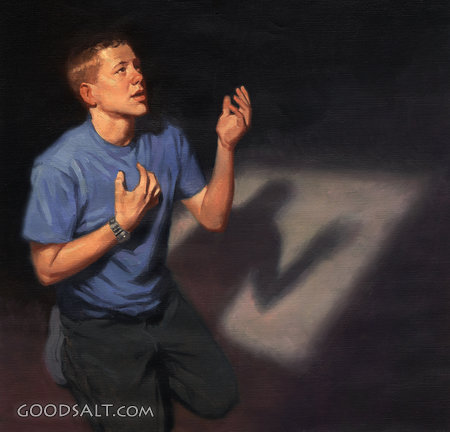 kneeling, pray, prayer, boy, man, repentant, repent, light, praying, repentance