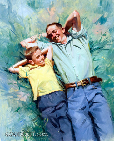 Time Off Genesis 2:2-3 Exodus 20:10-11 happy, father, green, yellow, behind, yard, grass, caucasian, head, lawn, son, laying, shirt, male, relaxing, hands clasped, reclining, fathersday2014 PROJECTION - License for PowerPoint™ PRINT – buy a print of this picture; optional frame Bible Hub |
