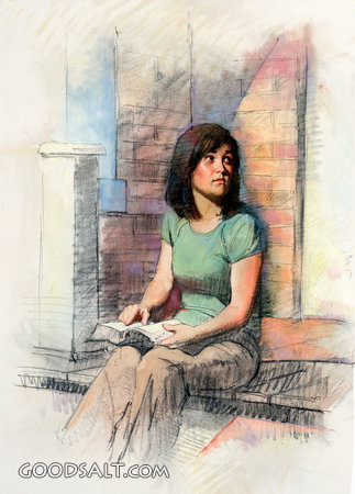 Study to Show Thyself Approved Unto God. 2 Timothy 3:16 front, reading, studying, lap, bible, step, looking, thinking, caucasian, porch, hispanic, woman, watching, searching, young, sitting, brunette PROJECTION - License for PowerPoint™ PRINT – buy a print of this picture; optional frame Bible Hub |
