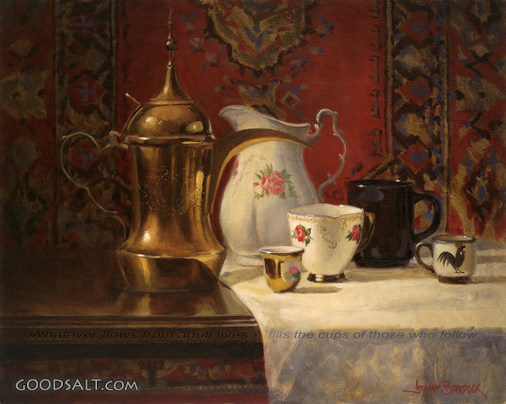 Whatever Flows From Adult Lives... Proverbs 22:6 Ephesians 6:1-4 teach, teaching, parable, influence, care, example, support, family, friendship, coffee, jug, cup, children, parents, still life PROJECTION - License for PowerPoint™ PRINT – buy a print of this picture; optional frame Bible Hub |