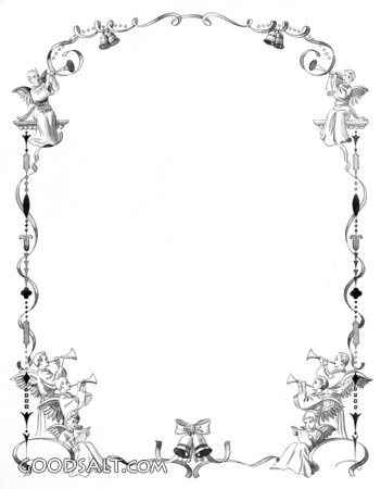 angel, drawing, trumpet, border, bell, christmas, vintage