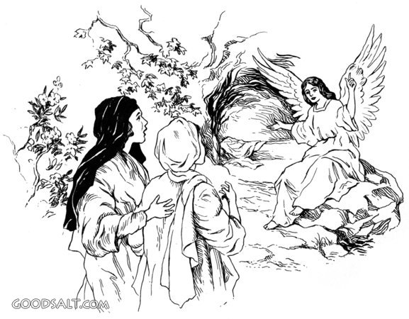 angel, empty, christ, Jesus, morning, tomb, sunday, resurrection, easter, gscoloringpage