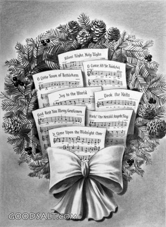 wreath, christmas, bow, music, idlas0314, wreath of song sheets, song sheets