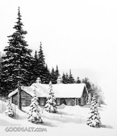 deep, mountain, snow, cabin, winter, forest