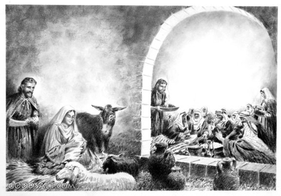 full, Jesus, inn, baby, joseph, mary, manger, room, christmas, stable