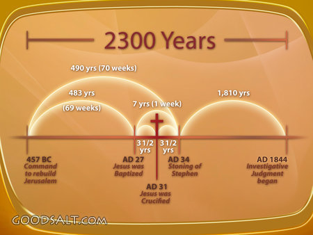 2300 Day Prophecy Daniel 9:24-27 Daniel 8:14 baptized, biblical, stoning, bible, sanctuary, daniel, prophecy, prophet, chart, doctrine, stephen, dan, Scriptures, stoned, god's word, old testament, time line, eschatology, eschatological, 2300 days, 2300 years, 2300, 457 bc, 457, ad 31, ad 1844, sanctuary doctrine, ad 34, 490 yrs, 490, 1, 810 yrs, 7 years, one week, 1 week, 69 weeks, 69, investigative judgment, investigative, rebuild jerusalem, stephen stoned PROJECTION - License for PowerPoint™ PRINT – buy a print of this picture; optional frame Bible Hub |