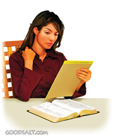 study, bible, caucasian, hispanic, woman, Scriptures, steve, creitz, italian, white background
