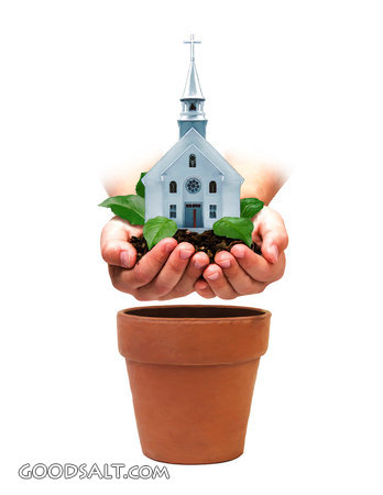 planting, grow, holding, church, pot, steeple, cross, plant, soil, hands