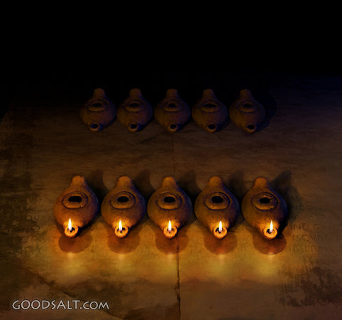 Lamps of the Ten Virgins Matthew 25:1-13 lost, lamp, prepared, saved, light, holy ghost, holy spirit, lamps, ten virgins, 10 virgins, 5 foolish virgins, 5 wise virgins PROJECTION - License for PowerPoint™ PRINT – buy a print of this picture; optional frame Bible Hub |