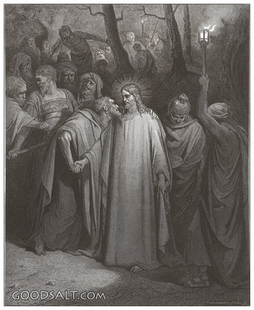 Jesus, kiss, betrayal, judas, gethsemane, garden, Gustave Dore