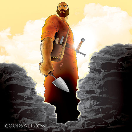 build, man, jerusalem, building, prophet, shovel, nehemiah, sword