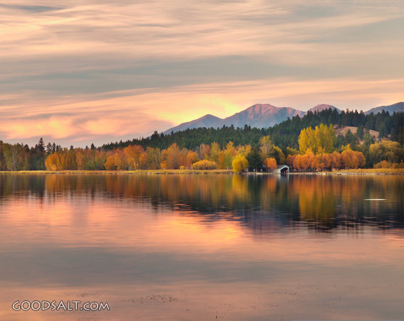 covered, autumn, mountain, reflection, sunset, bridge, trees
