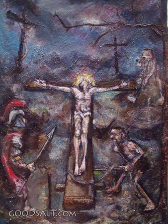 Jesus Is Nailed Matthew 27:35 Mark 15:24 Luke 23:33 John 19:18 darkness, hope, halo, execution, sacrifice, crucifixion, roman soldier, jesus crucified, injustice, immortal spirit, life and death, cross in landscape, light in darkness, nailed to cross, saviour of mankind PROJECTION - License for PowerPoint™ PRINT – buy a print of this picture; optional frame Bible Hub |