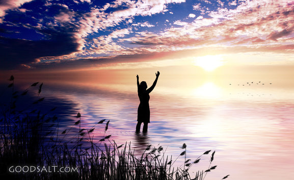 water, woman, sunrise, worship, praise, silhouette