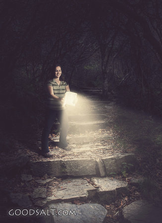 glow, dark, bible, flashlight, woman, pathway, guide, light