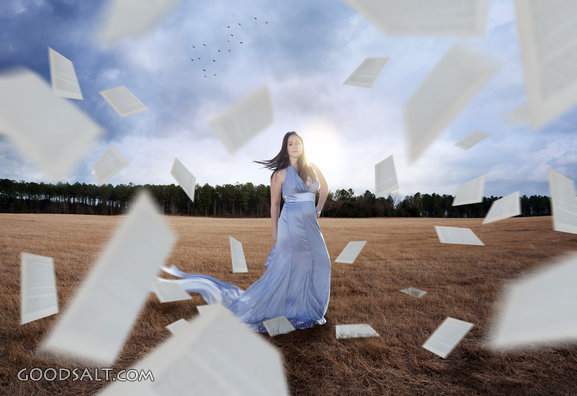 surreal, bible, book, girl, woman, field, words, Pages