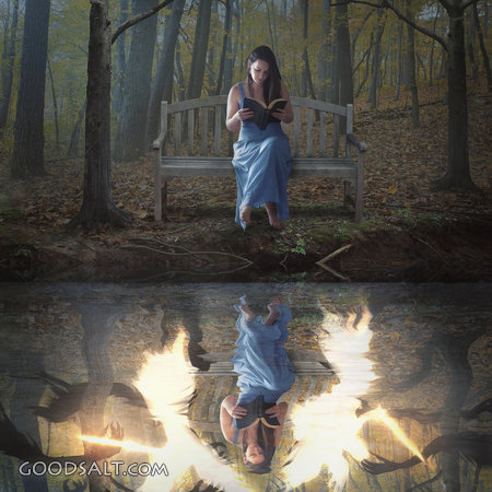 Woman Reads Bible With Reflection John 5:39 surreal, angel, glow, shine, study, water, bright, dark, nature, fight, color, bible, book, imagination, battle, lake, reflection, girl, woman, war, light, dream, night, religion, concept, forest, demon PROJECTION - License for PowerPoint™ PRINT – buy a print of this picture; optional frame Bible Hub |
