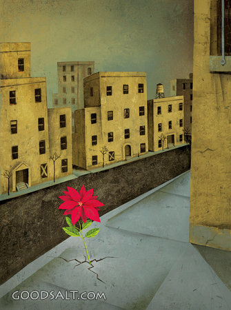 Red Flower Growing Through Cracks in Sidewalk 1 Peter 1:3 city, poinsettia, grow, flower, hope, mission, decay, trapped, outreach, missionary, poverty, christmas, redemption, barrie, ghetto, intercity, slum PROJECTION - License for PowerPoint™ PRINT – buy a print of this picture; optional frame Bible Hub |