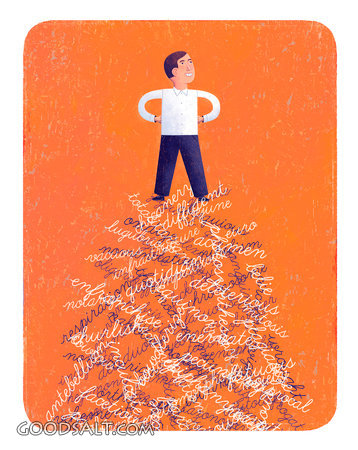 communicate, arrogant, pompous, words, wordy, show off, bigmouth, articulate, vocabulary, talkative